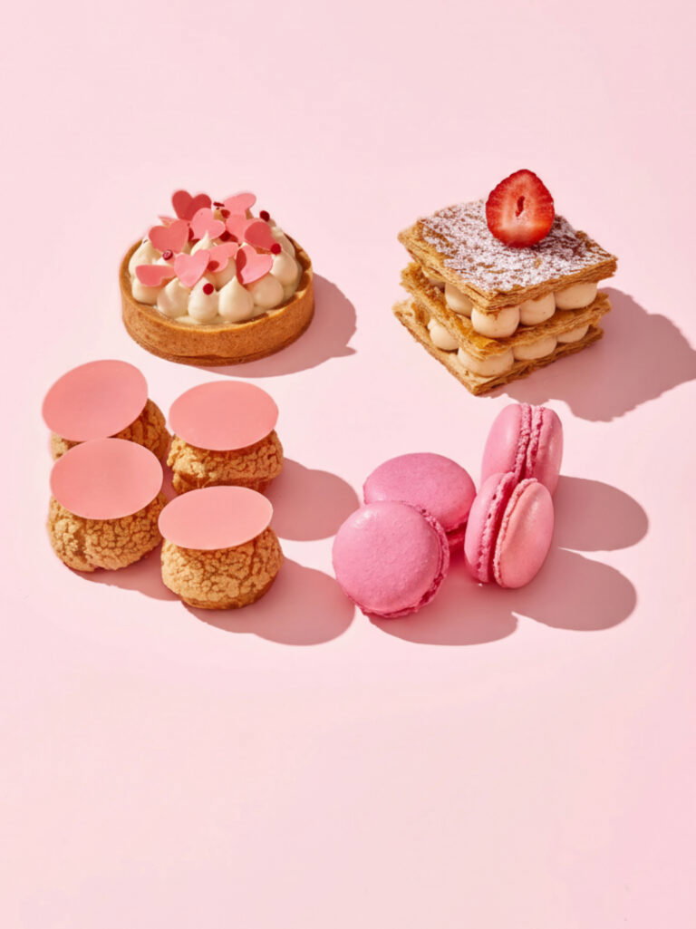 כל הקינוחים שלנו במארז אחד: טארט לבבות, פחזניות, מקרונים ומילפיי